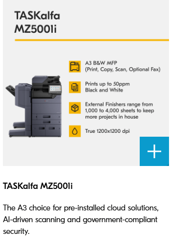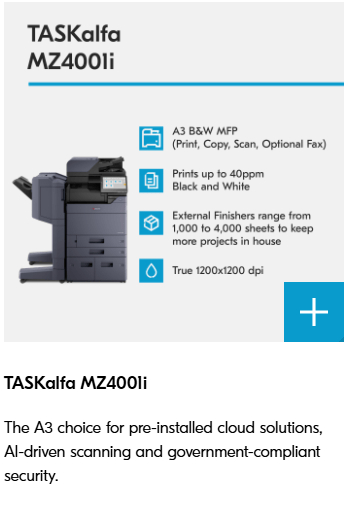 These four A3 Black and White MFPs deliver cloud connectivity with print, copy, scan and optional fax from 25 to 70ppm.